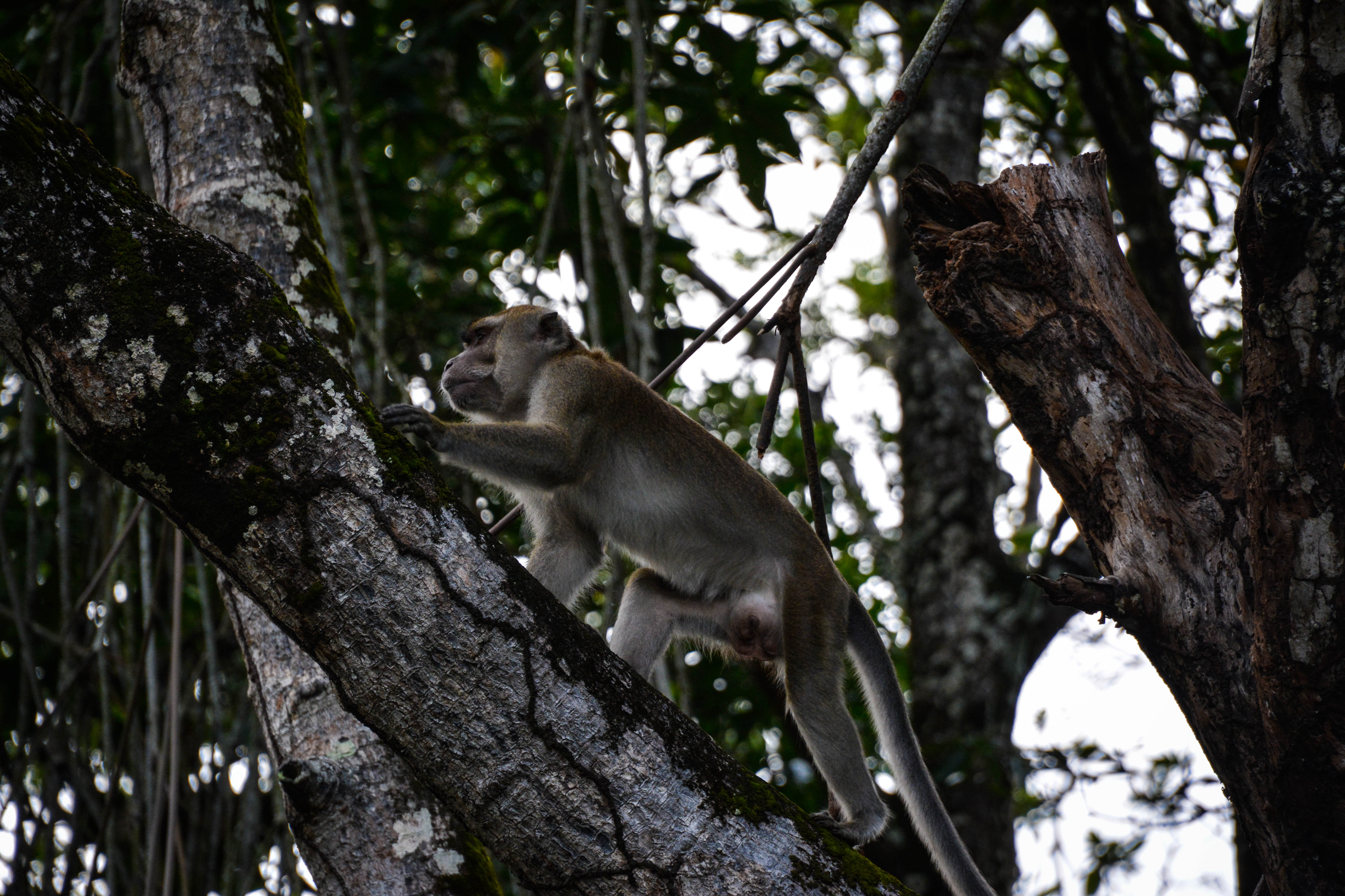 We continue our journey and soon reach areas that seem very remote, although we are barely 10 minutes away from the capital by boat. Soon we can see the first macaques.