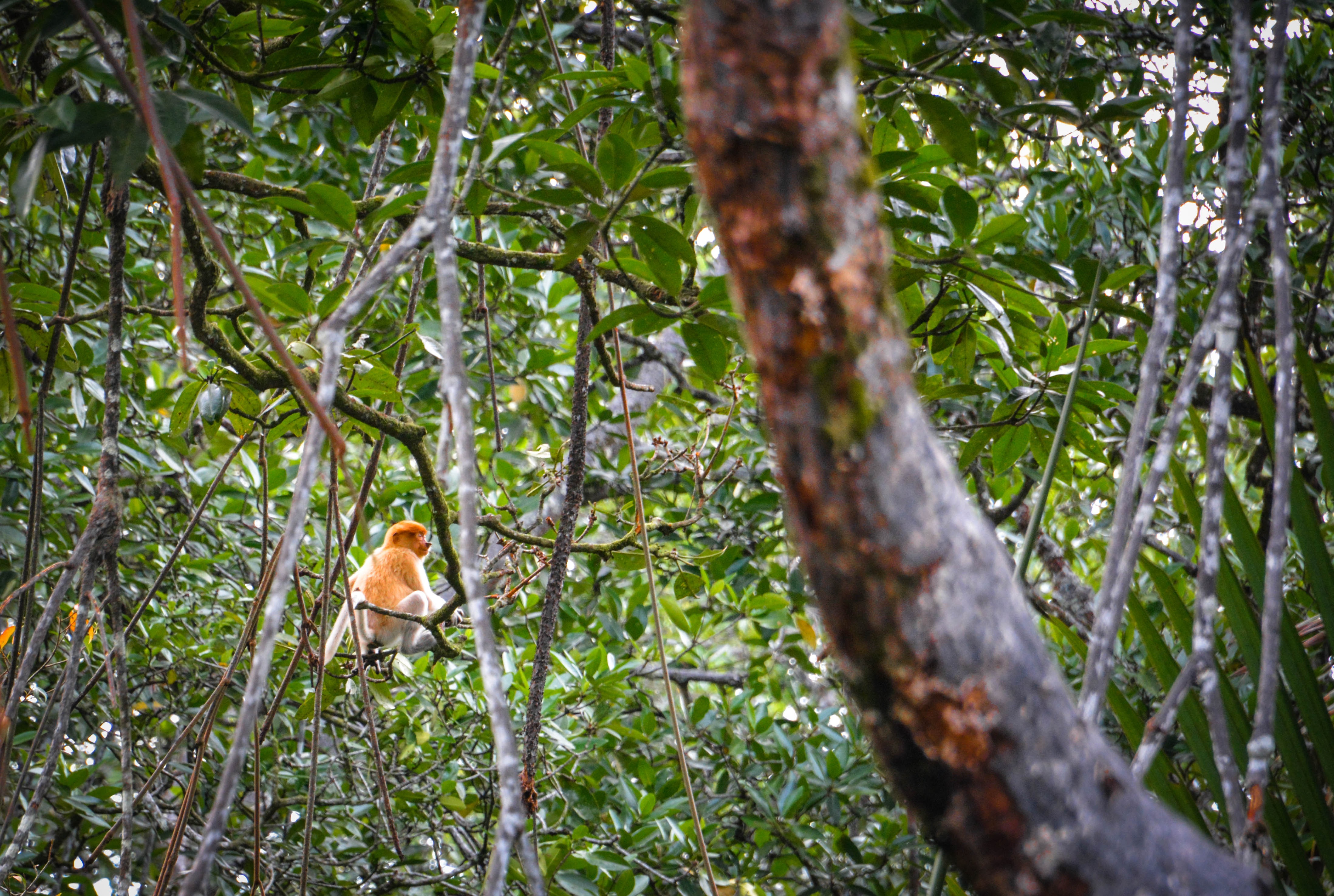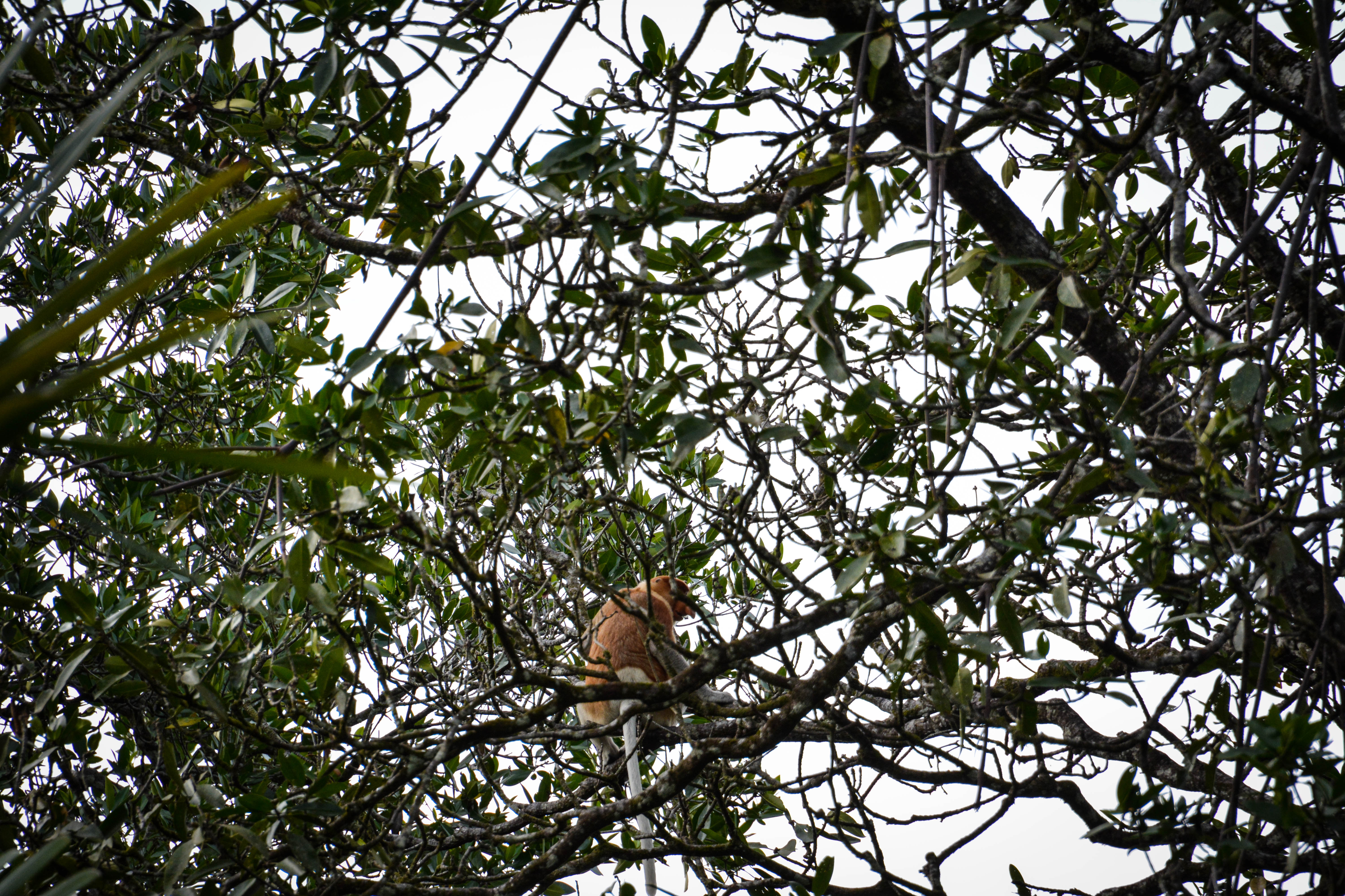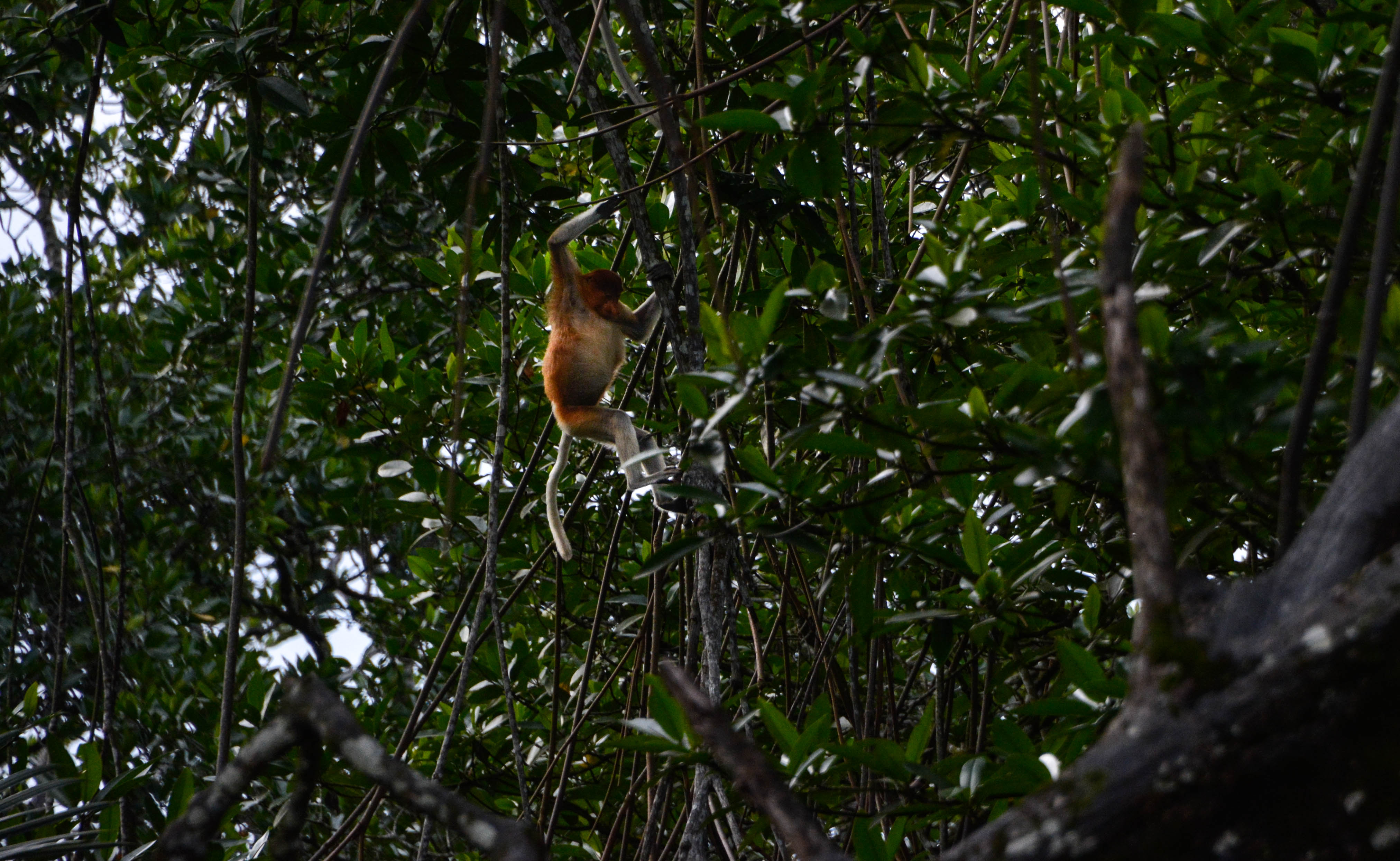 Shortly afterwards we are also successful with our actual goal and can see a few proboscis monkeys from a distance – and above all hear!