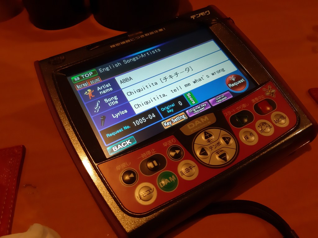 As the microfone is set to maximum volume our great singing skills can be heard three blocks away for sure. As soon as the songs start some trashy Japanese videos are shown that don’t match the song at all, but it is quite funny to see Bon Jovi, ABBA, Bonnie Tyler or Meat Loaf with a Japanese video in the back.