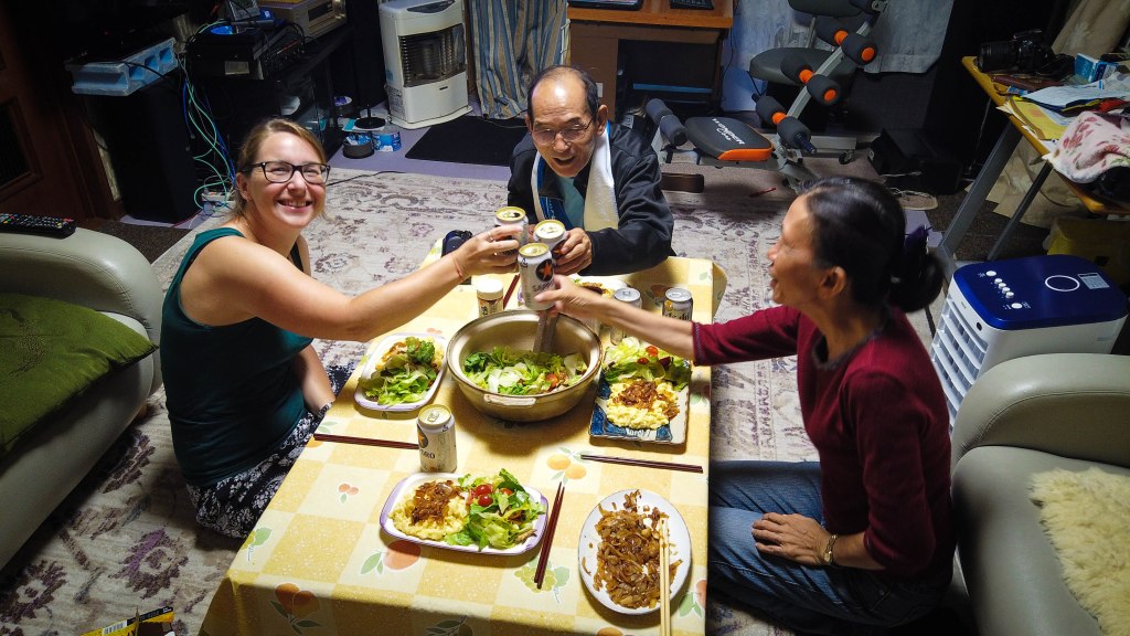 The culinary highlight of the day awaited us in the evening in the house of Ayako. She had conjured up many different small Japanese dishes and we could eat enough for the first time in a long time!