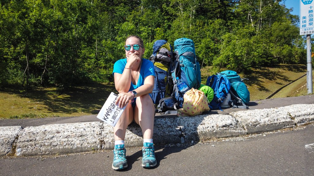 We get up, pack our stuff and position ourselves along the road. Today we wanted to hitchhike as far as possible towards Akan National Park and visit the lavender farms of Furano along the way. The road close to our camp site is not really frequented and until now we got to know Japanese people as security-loving and we posed the question to ourselves if we even have a chance of being picked-up …