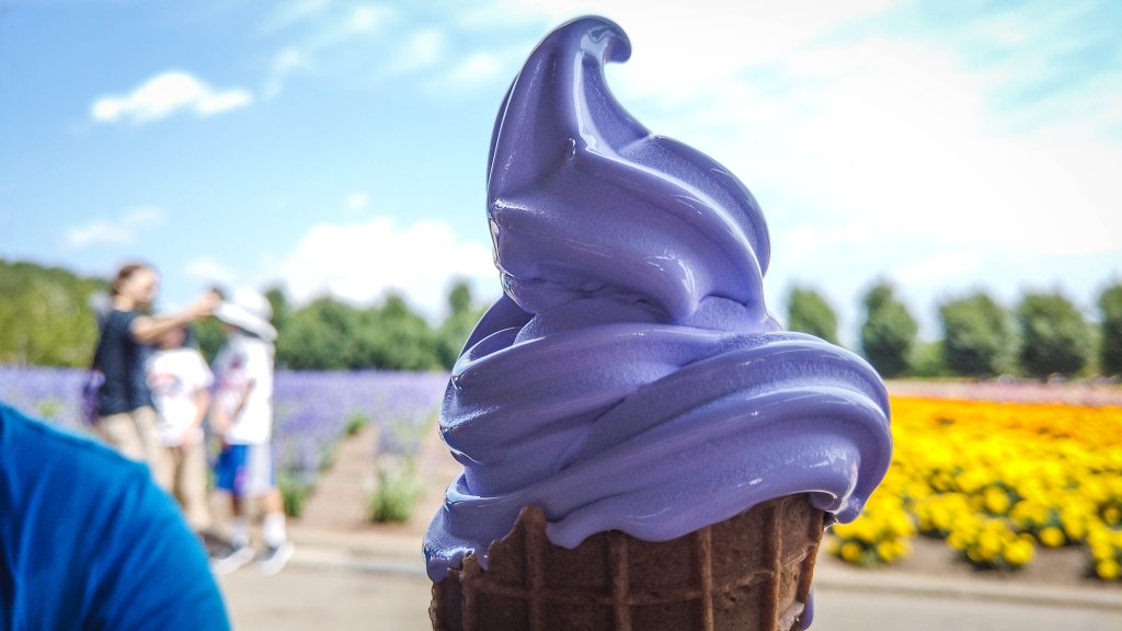 As soon as we arrived at Tomita Farm a sweet smell of melon hits u. Mostly honey melons are cultivated on Hokkaido. The price is quite Japanese as well – one melon costs at least 2.200 Yen – that is 18 to 19 Euros! We decline the offer and move on to the lavender fields.