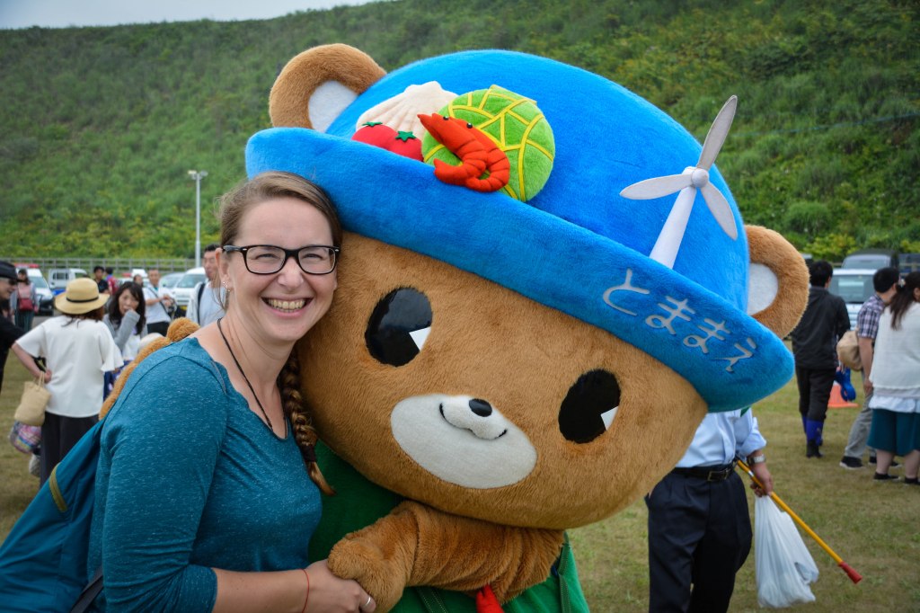 Of course Tomamae owns a mascot that is around the festival and takes pictures with everyone. As it wears a hat similar to the one Diana wore to her defense of dissertation we took a picture with the mascot as well.