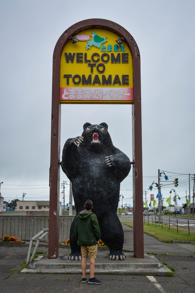 An animal that plays in a major role in everday life in Hokkaido is the brown bear. At the entrance of Tomamae everybody is greeted by a huge brown bear!