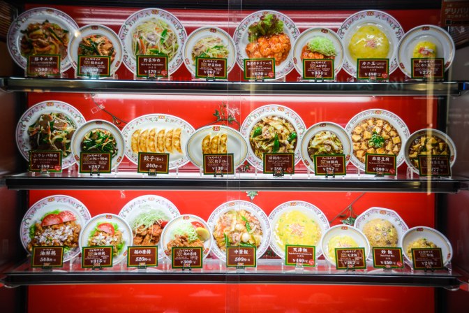 A frequently encountered and interesting thing is the reproduction of food. These are then placed in their original size in the shop windows of the restaurants and sometimes provided with the price, which of course has made life easier for us.