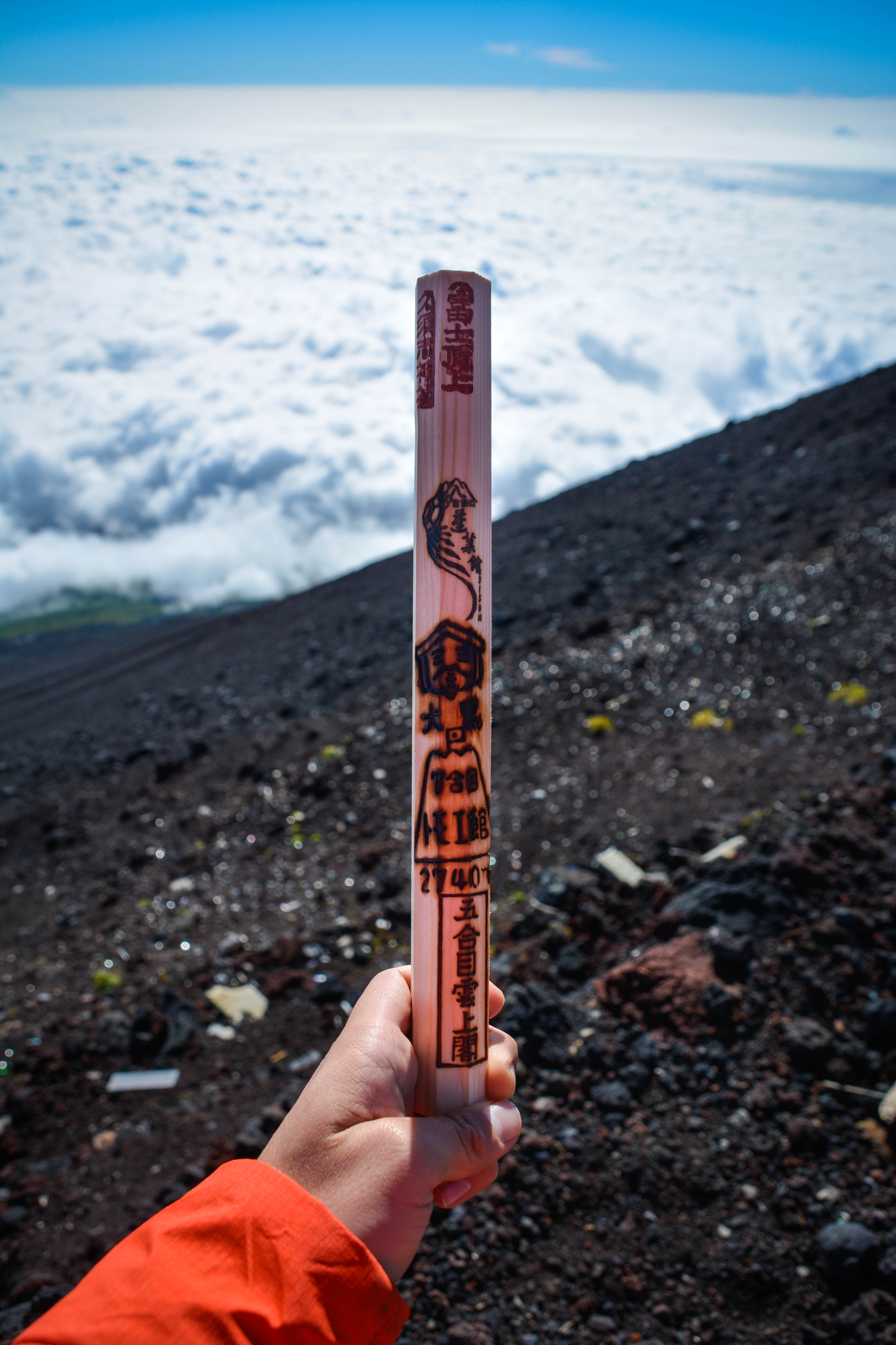 At Fujisan there are many huts and stations where for example drinks, snacks or oxygen containers could be bought. Nevertheless there is also the possibility to get a brand stamp tattooed on a wooden stick. Quasi like a kind of walking stick. With the best will in the world, we couldn’t miss it!