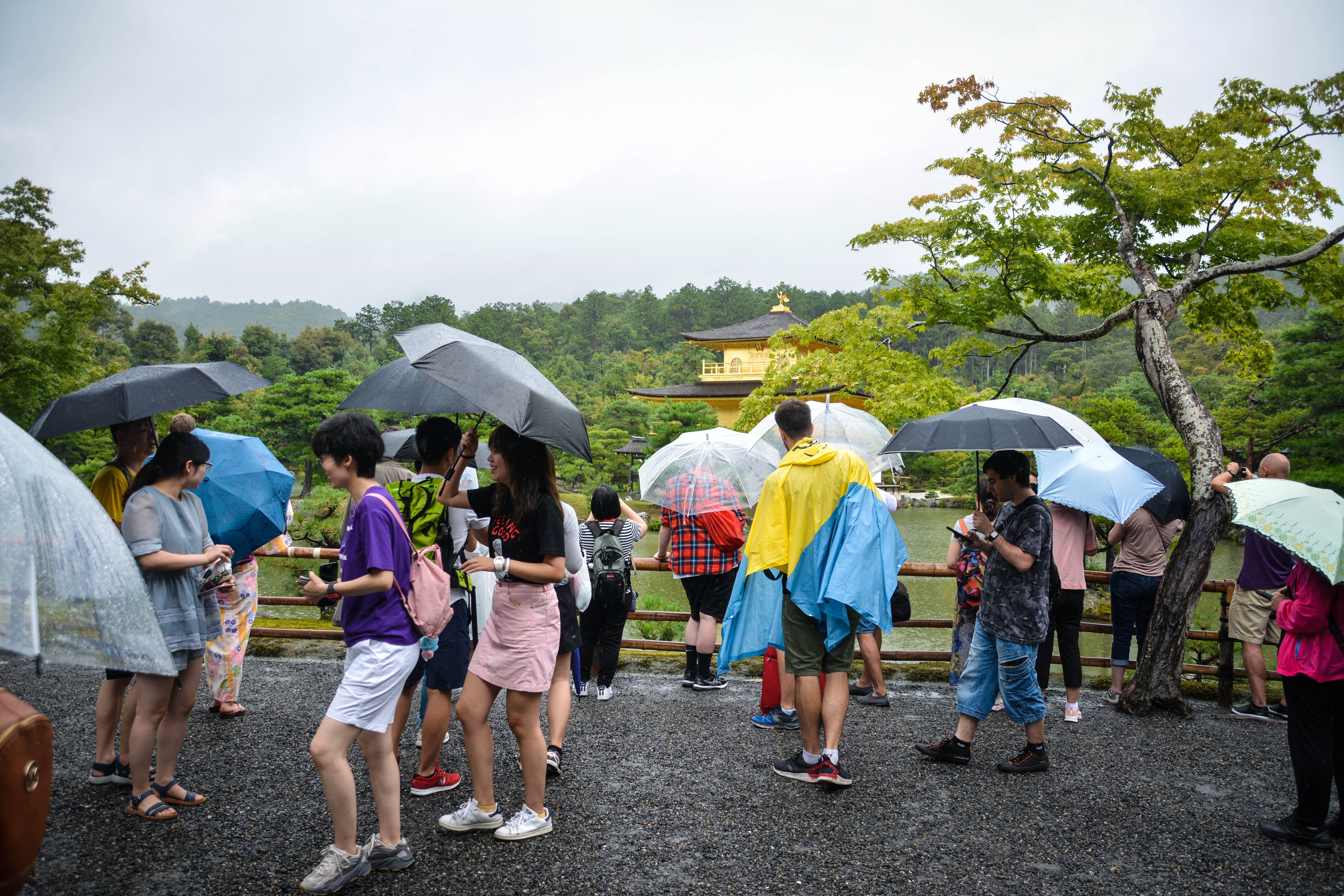 We dedicate our next day to the older history again and drive with high expectations to the Kinkau-ji, the golden temple of Kyoto. Despite the rain, other people also had this idea on this day.