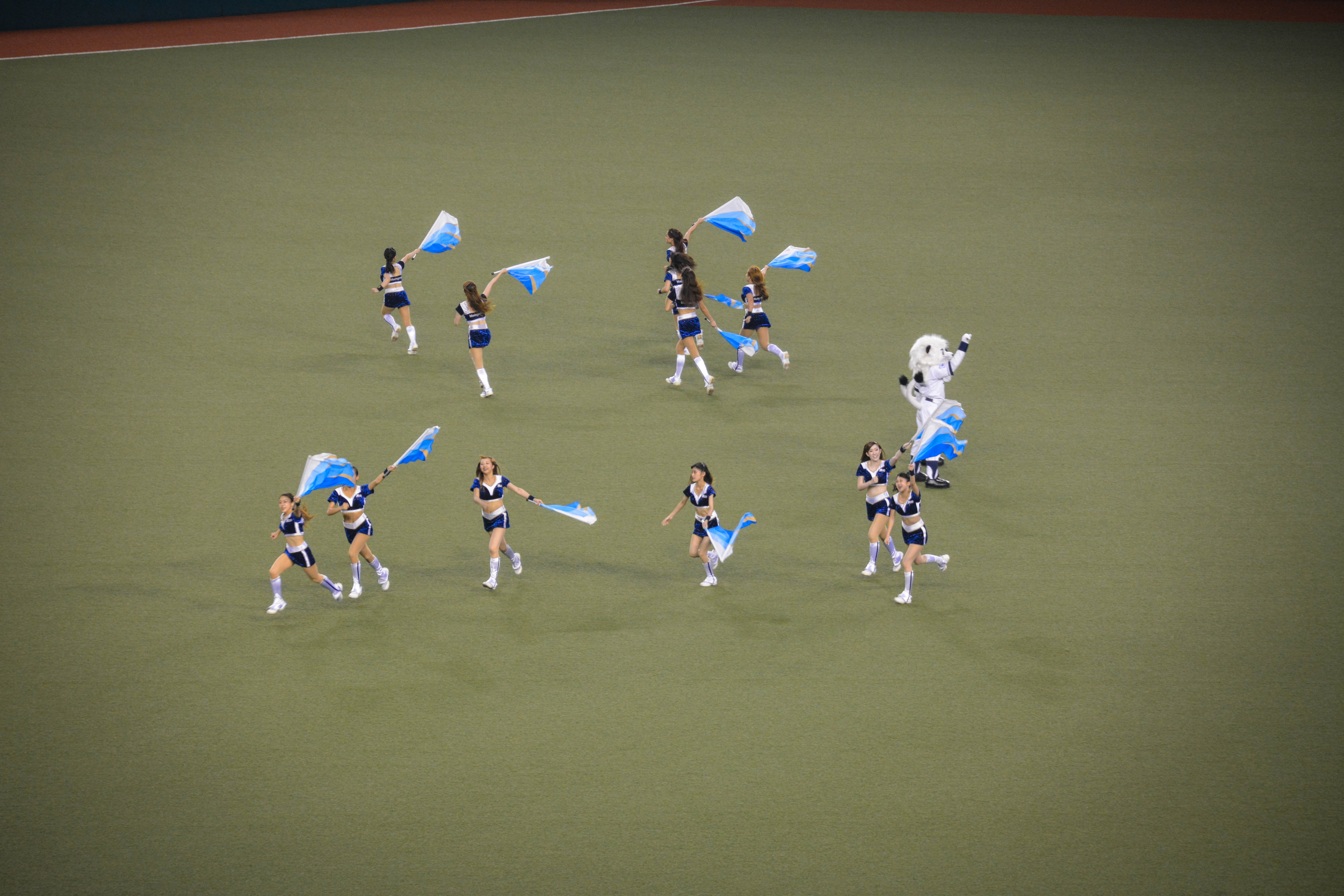 At the beginning of the game the stadium was still half empty. By the end of the game, however, it was completely full. Of course, cheerleaders came onto the field first, before the Japanese national anthem sounded.